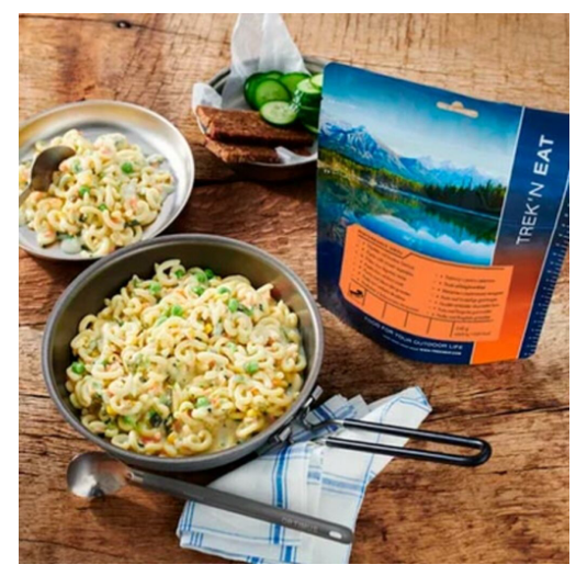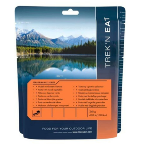 Obtén energía y nutrientes con la Liofilizado Pasta con verduras de colores de Trek'n Eat. Perfecta para actividades outdoor con esfuerzo físico, esta pasta de huevo y sémola de trigo incluye verduras como brócoli, zanahoria, pimiento, maíz y calabacín, y una deliciosa salsa de queso para un sabor aún más completo.