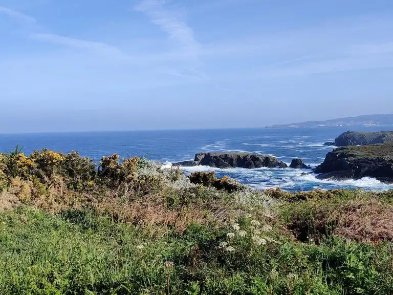 Durante el recorrido atravesamos distintos ambientes característicos del litoral atlántico gallego: matorral costero atlántico, con tojos, brezos y herbáceas bajas que permiten una buena visibilidad del entorno incluso de noche; zonas de pinar y vegetación arbustiva, que aportan abrigo del viento y contrastes de luz y sombra durante la caminata; áreas abiertas y despejadas, ideales para detenernos, apagar luces y observar el cielo nocturno en todo su esplendor; y tramos próximos al mar, donde el sonido del océano acompaña la marcha y refuerza la sensación de inmersión en la naturaleza.